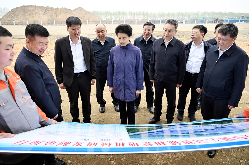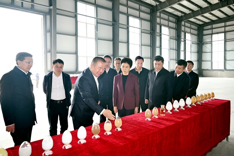 梁惠玲来到“两航”树脂加工项目建设现场,调研产业项目建设工作。