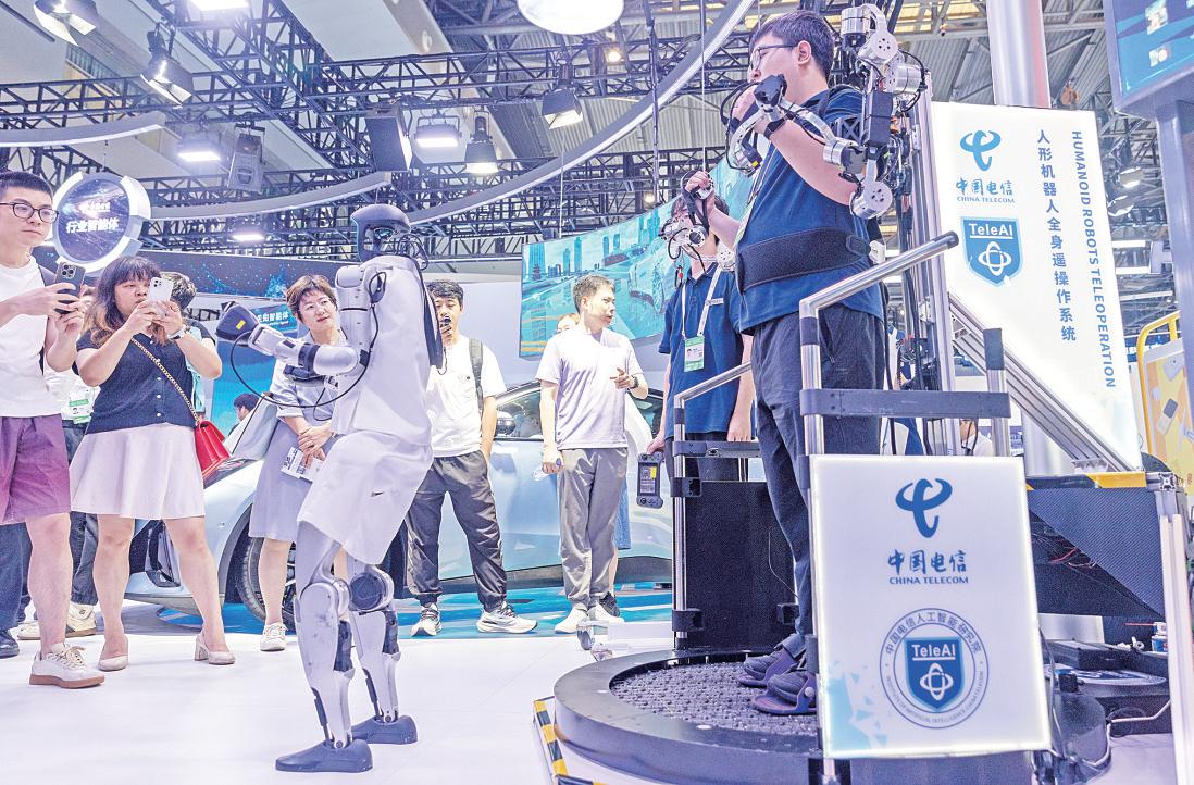 在2025世界人工智能大会暨人工智能全球治理高级别会议上,中国电信展出了国内领先的全自研人形机器人全身遥操作系统。机器人工作时产生的力学信号通过5G专网可实时反馈给操作员,助其准确感知机器人的工作状态和环境。