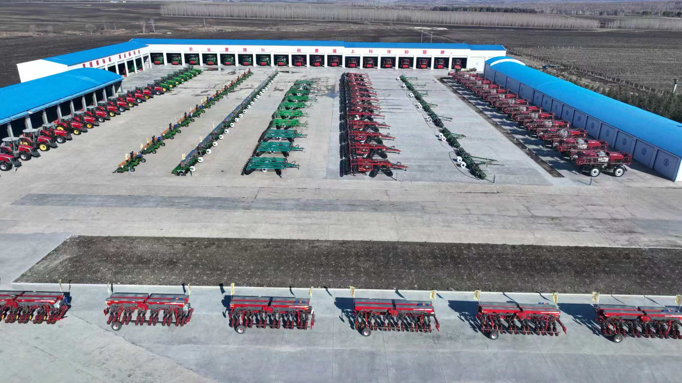 农机具集中停放中心,各类大马力机车、播种机、扶垄夹肥机等春播机械全部检修保养完毕