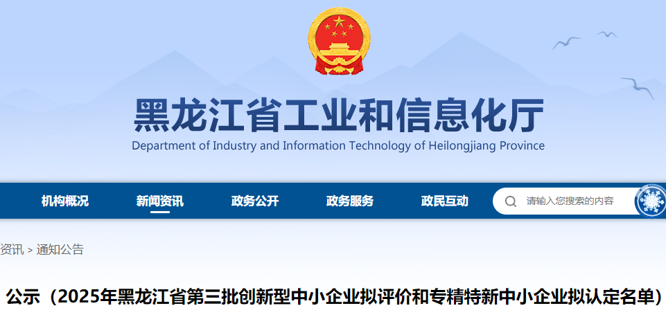 公示(2025年黑龙江省第三批创新型中小企业拟评价和专精特新中小企业拟认定名单)