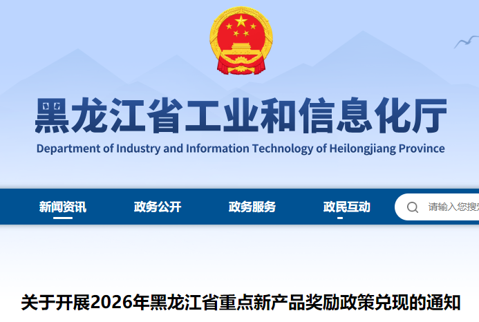 关于开展2026年黑龙江省重点新产品奖励政策兑现的通知