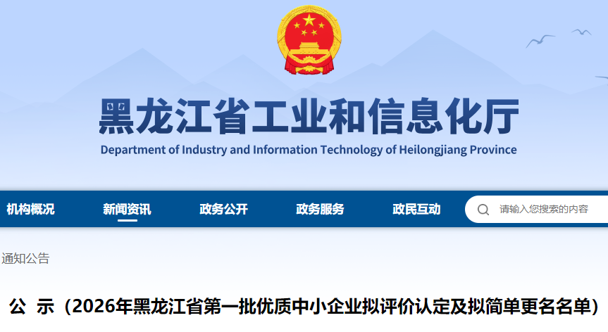 公 示(2026年黑龙江省第一批优质中小企业拟评价认定及拟简单更名名单)
