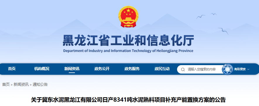 关于冀东水泥黑龙江有限公司日产8341吨水泥熟料项目补充产能置换方案的公告