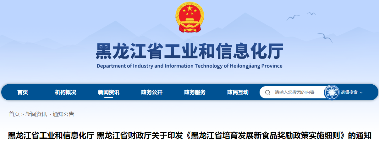 黑龙江省工业和信息化厅 黑龙江省财政厅关于印发《黑龙江省培育发展新食品奖励政策实施细则》的通知