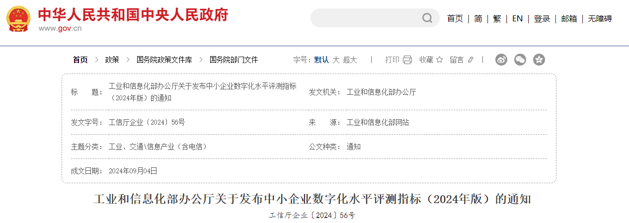 工信部发布《中小企业数字化水平评测指标(2024年版)》
