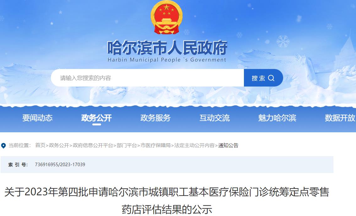 关于2023年第四批申请哈尔滨市基本医疗保险协议管理定点医药机构评估结果的公示