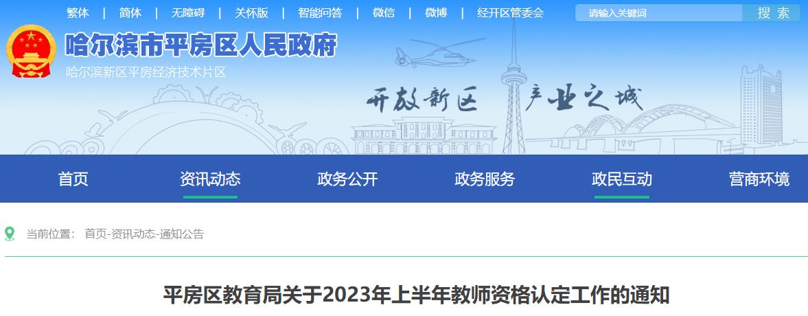 平房区教育局关于2023年上半年教师资格认定工作的通知