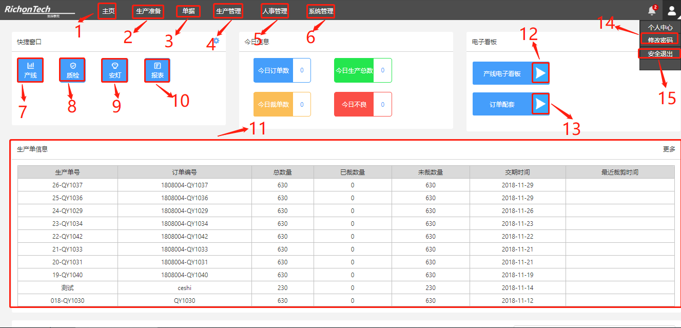 12. 击跳转至生产管理模块并打开电子看板页面;