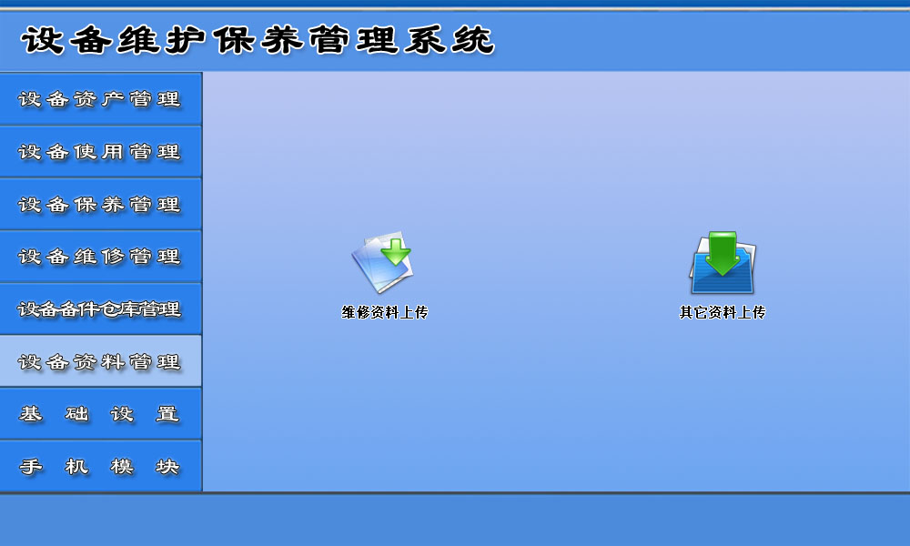 6、设备资料管理: 维修资料上传和其它资料上传。