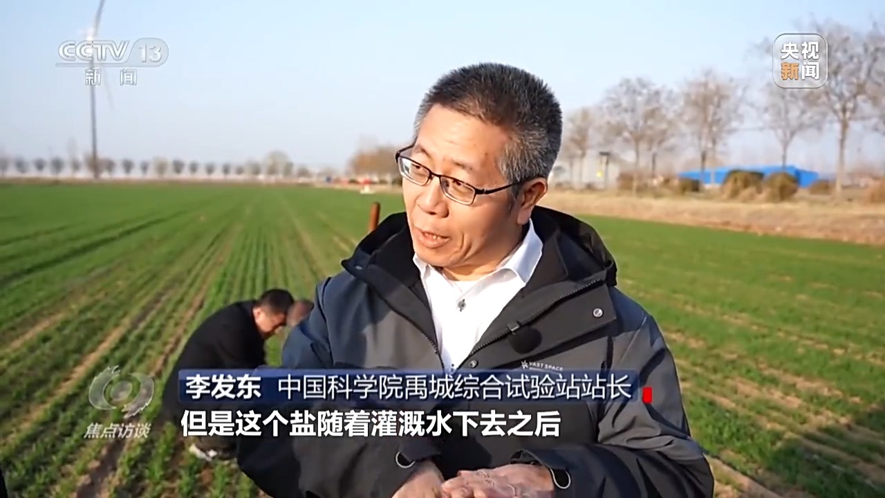 中国科学院禹城综合试验站站长李发东:这个盐碱地虽然现在已经是良田了,但是盐随着灌溉水下去之后,其实并没有走远,还是在地下水里边,去年冬半年下雨比较大,水比较充分,盐比较容易返上来。