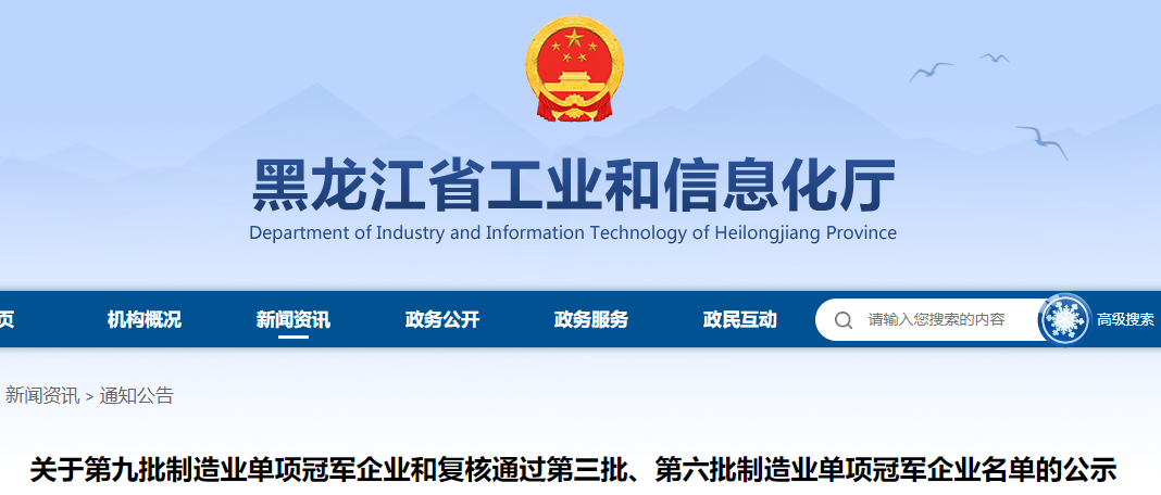 关于第九批制造业单项冠军企业和复核通过第三批、第六批制造业单项冠军企业名单的公示