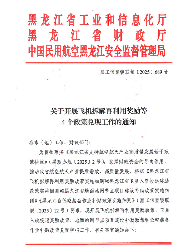 关于开展飞机拆解再利用奖励等4个政策兑现工作的通知