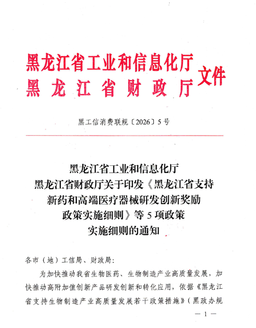 关于印发《黑龙江省支持新药和高端医疗器械研发创新奖励政策实施细则》等5项政策实施细则的通知