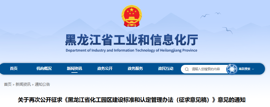 关于再次公开征求《黑龙江省化工园区建设标准和认定管理办法(征求意见稿)》意见的通知