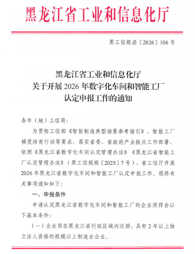 关于开展2026年数字化车间和智能工厂认定申报工作的通知
