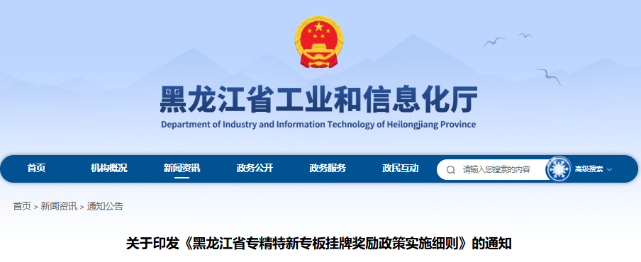 关于印发《黑龙江省专精特新专板挂牌奖励政策实施细则》的通知