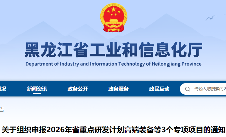 关于组织申报2026年省重点研发计划高端装备等3个专项项目的通知