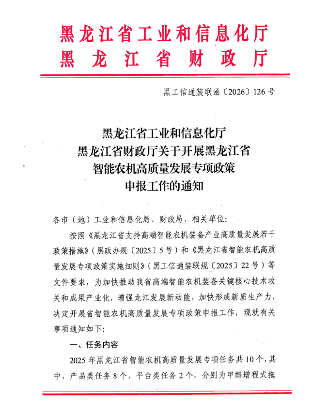 关于开展黑龙江省智能农机高质量发展专项政策申报工作的通知