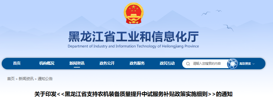关于印发<<黑龙江省支持农机装备质量提升中试服务补贴政策实施细则>>的通知