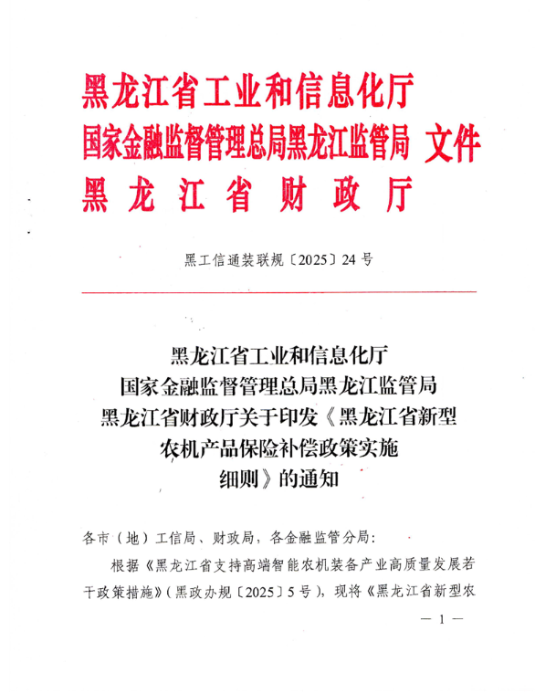 关于印发<<黑龙江省新型农机产品保险补偿政策实施细则>>的通知