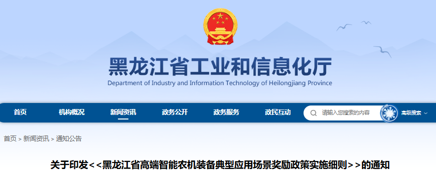 关于印发<<黑龙江省高端智能农机装备典型应用场景奖励政策实施细则>>的通知