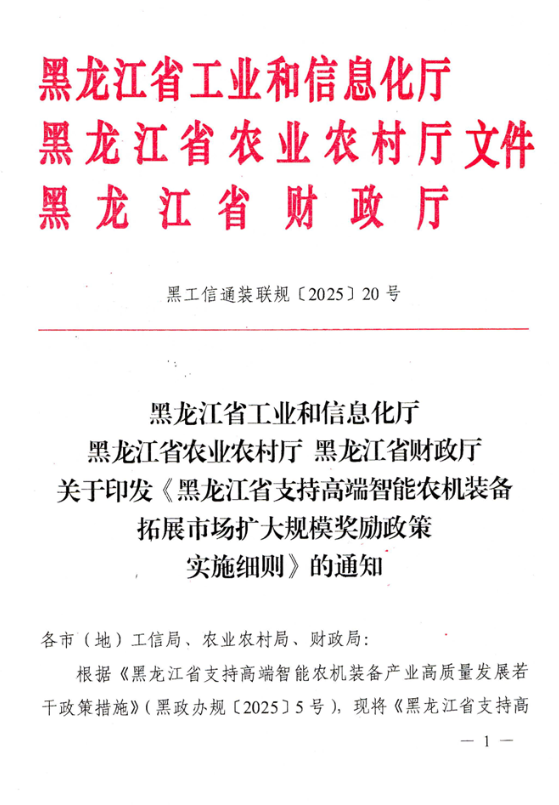 关于印发<<黑龙江省支持高端智能农机装备拓展市场扩大规模奖励政策实施细则>>的通知