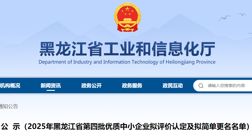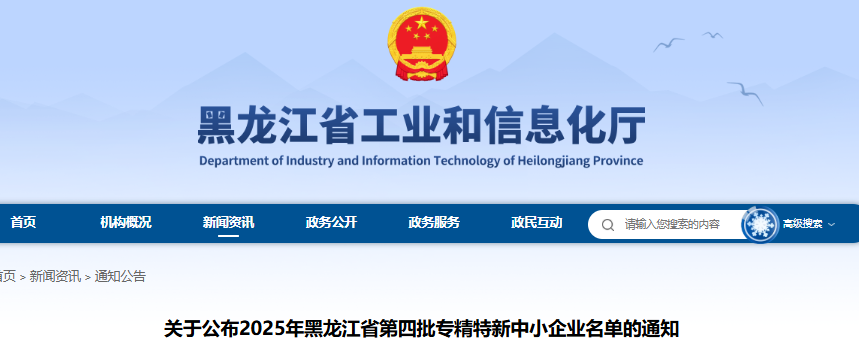 关于公布2025年黑龙江省第四批专精特新中小企业名单的通知