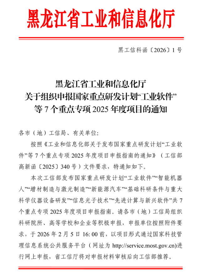 关于组织申报国家重点研发计划“工业软件”等7个重点专项2025年度项目的通知