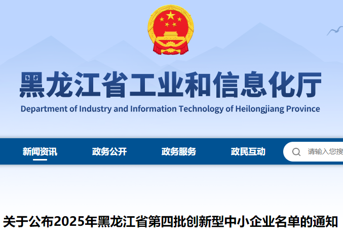 关于公布2025年黑龙江省第四批创新型中小企业名单的通知