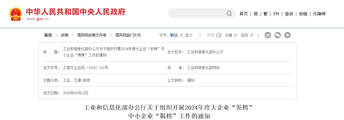 工业和信息化部办公厅关于常态化组织开展大企业“发榜”中小企业“揭榜”工作的通知